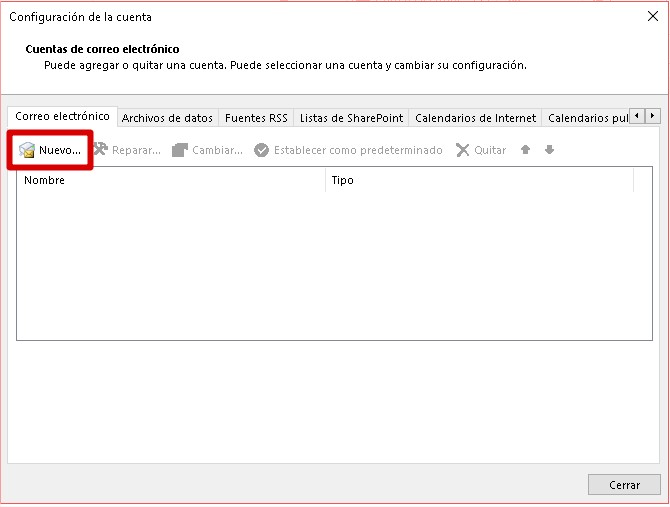 Para configurar tus cuentas de correo en Microsoft Outlook, sigue los siguientes pasos: