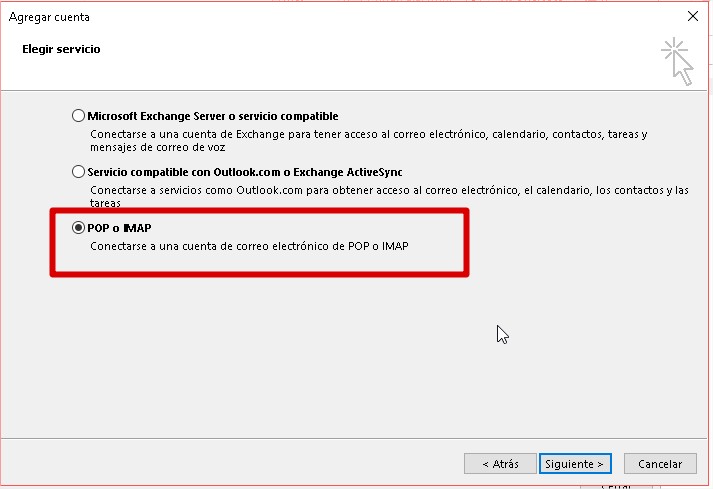 5. Elige POP3 y da click en Siguiente