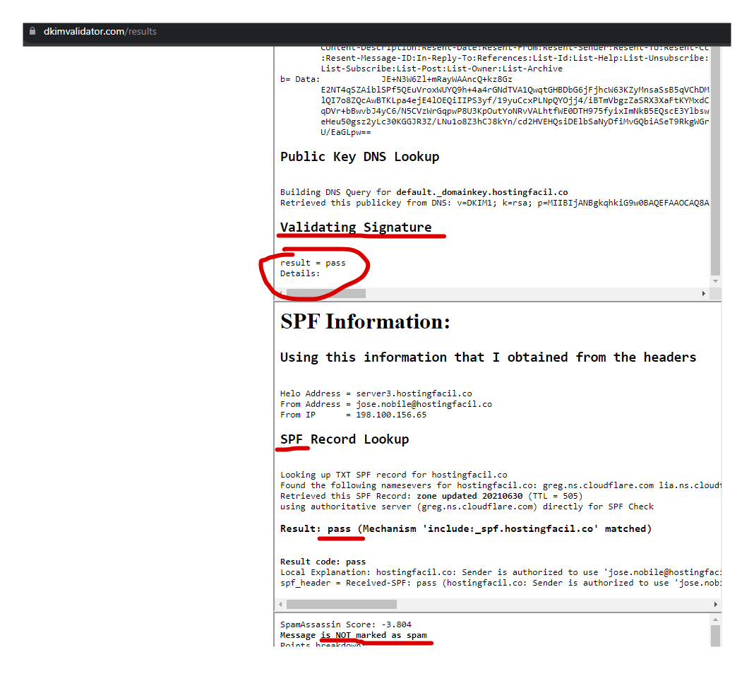 Si salió así el resultado como en la captura de pantalla, tu email con tu nuevo proveedor de email ha quedado correctamente configurado con SPF/DKIM