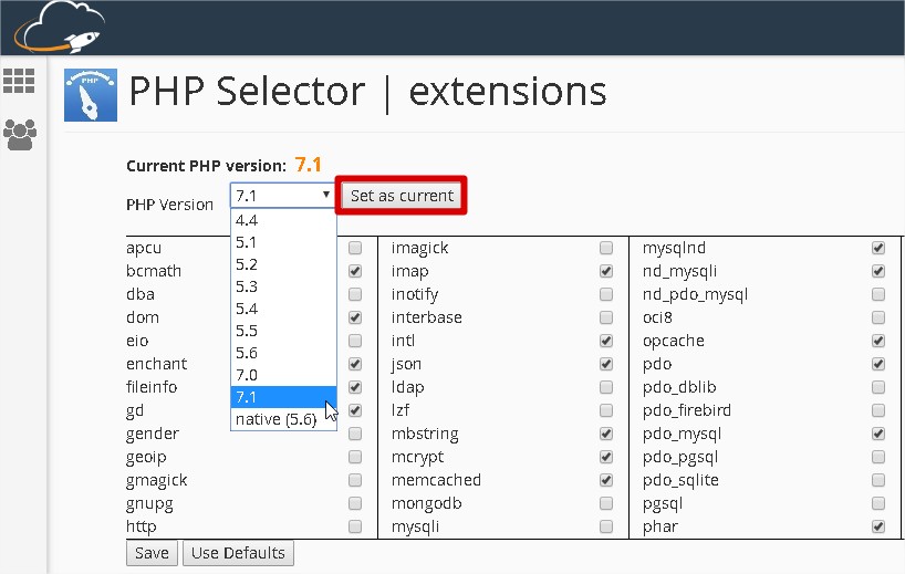 3. Seleccionar la versión de PHP que necesite y de click en "Set as Current".
