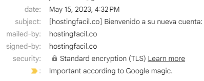 En Gmail, por ejemplo, donde dice mailed-by (SPF) y donde dice signed-by (DKIM), eso demuestra que el email está autenticado por Hostingfacil.co y que efectivamente lo enviamos nosotros.