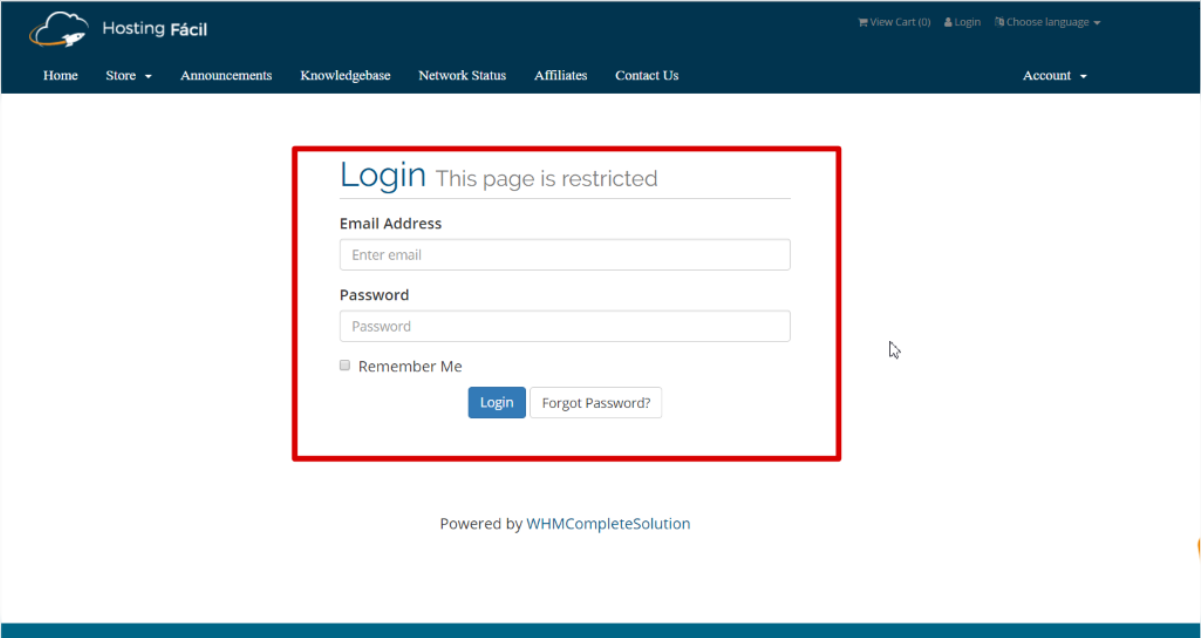 1. Dirígete al link https://www.hostingfacil.co/members/clientarea.php