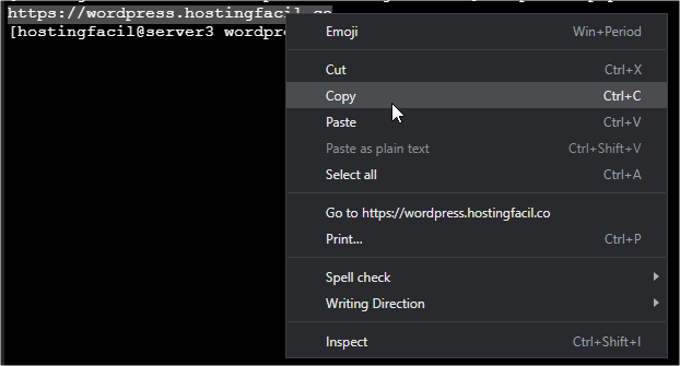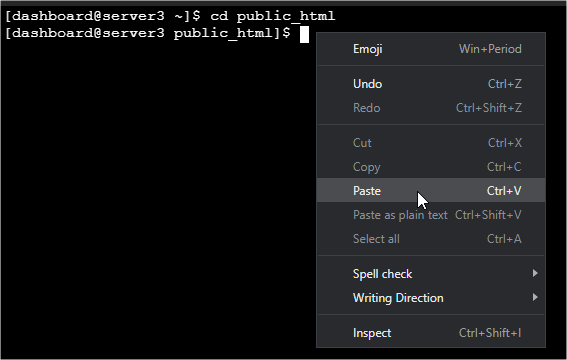 Una vez tenemos listo el comando a ejecutar, lo podemos copiar y luego pegar con click derecho -> Pegar: