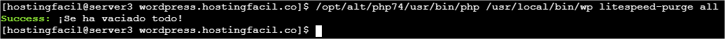 Con esto ya habrás reemplazado la URL de Wordpress tanto en base de datos como en archivos. Ahora, para que apliquen los cambios que has hecho por terminal, purga caché en Litespeed caché con este comando:/opt/alt/php74/usr/bin/php /usr/local/bin/wp litespeed-purge all